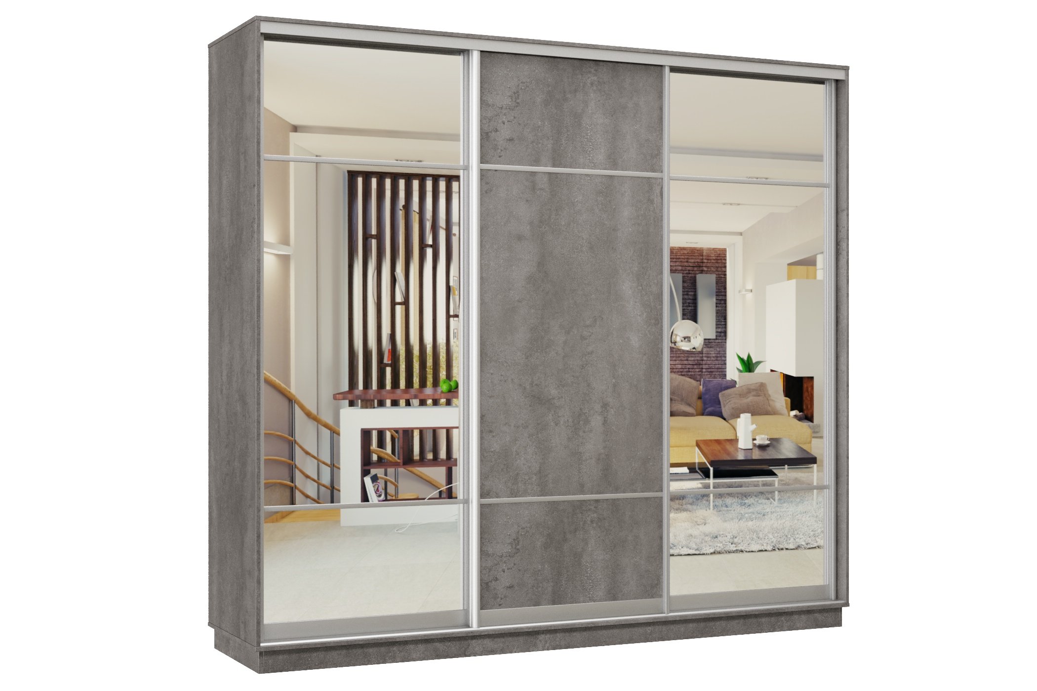 Шкаф-купе Премьер Лайт 60 (11;08;11) трехдверный (Бетон)