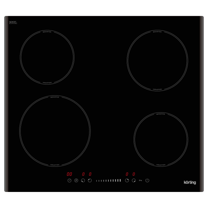 60 cм, сенсорное управление Slider Touch, 4 индукционные зоны приготовления, LED индикация для каждой зоны, Таймер, Функция "Защита детей", Автоматическое отключение, Индикация остаточного тепла, Booster для всех зон, TWIN Booster для 1ой зоны, Цвет: черный, Дизайн рамки: 2 скошенных края.