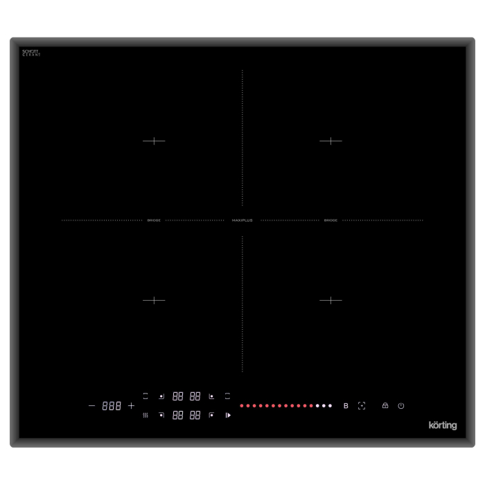 Стеклокерамика, ширина 60 см, сенсорное управление One Wake Touch, 14 уровеней нагрева, 4 индукционные зоны нагрева: 4 зоны с 2-мя функциями объединения BRIDGE, фунция объединения всех 4-х зон в одну MAXIPLUS, Booster на всех зонах, таймер, режим поддержания тепла, индикация остаточного тепла, автоматическое отключение, функция "Защита детей", функция Stop&Go, Цвет - черный, дизайн рамки - cкошенные края, в комлекте - сковорода диаметром 30 см из нержавеющей стали со стеклянной крышкой.
