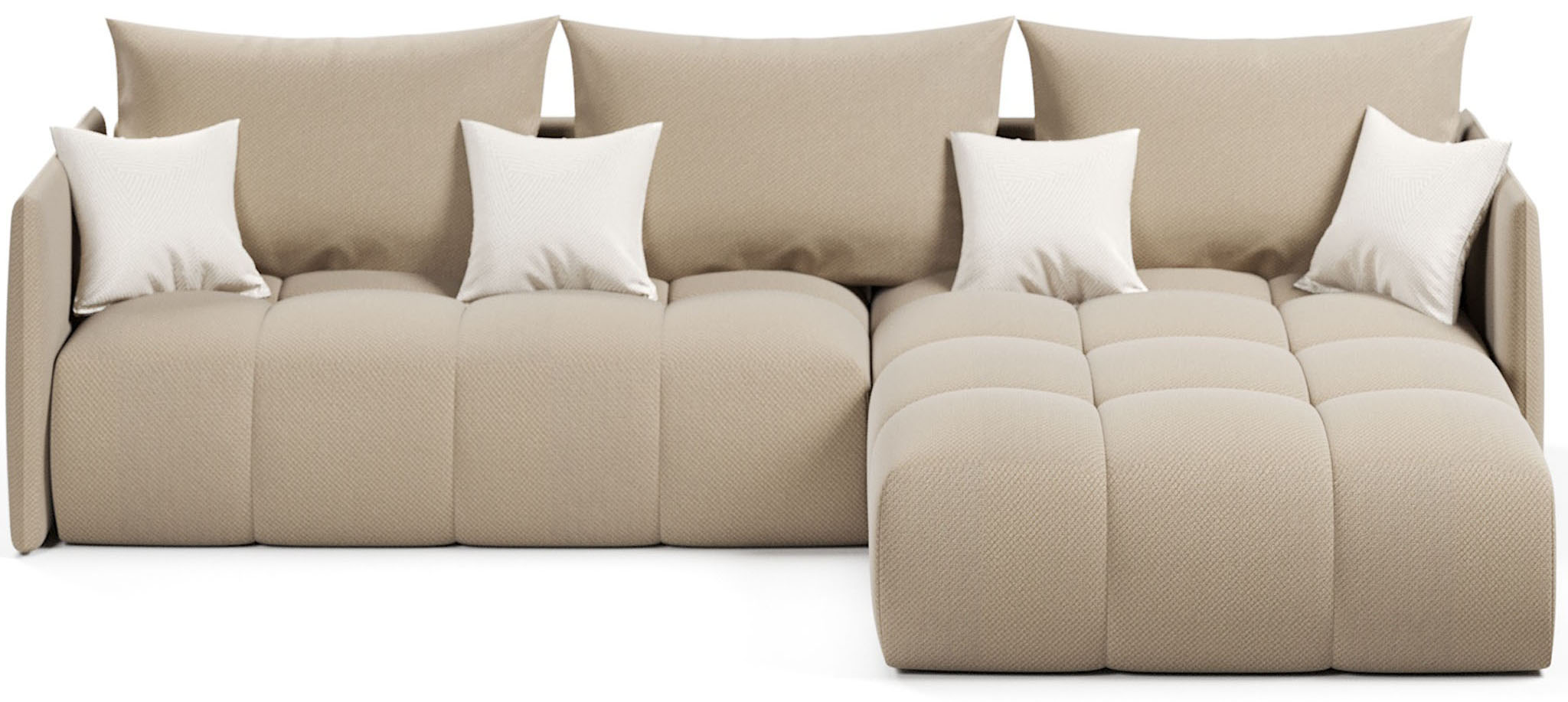 В комплекте: 4 декоративных подушек, 3 основных.