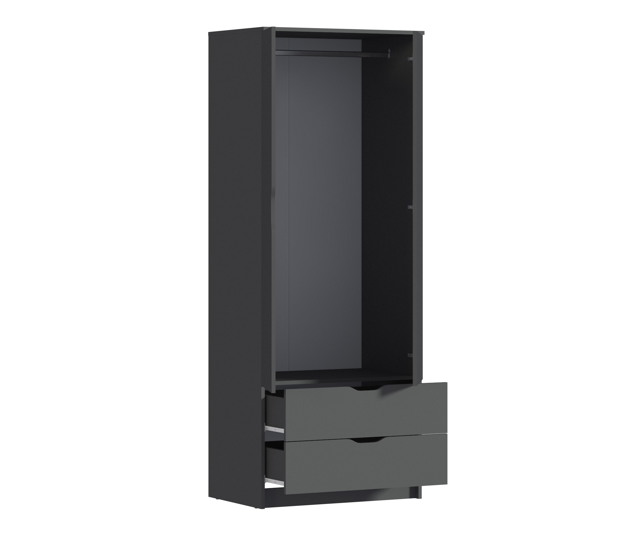 Внутри шкафа вы найдете два удобных ящика, которые помогут вам организовать мелкие предметы и аксессуары. Ящики легко выдвигаются и закрываются, обеспечивая удобный доступ к вашим вещам.