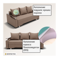 Достоинства: ровное спальное место, лёгкость процесса трансформации дивана, ёмкий бельевой ящик, прочность механизма, долговечность конструкции.