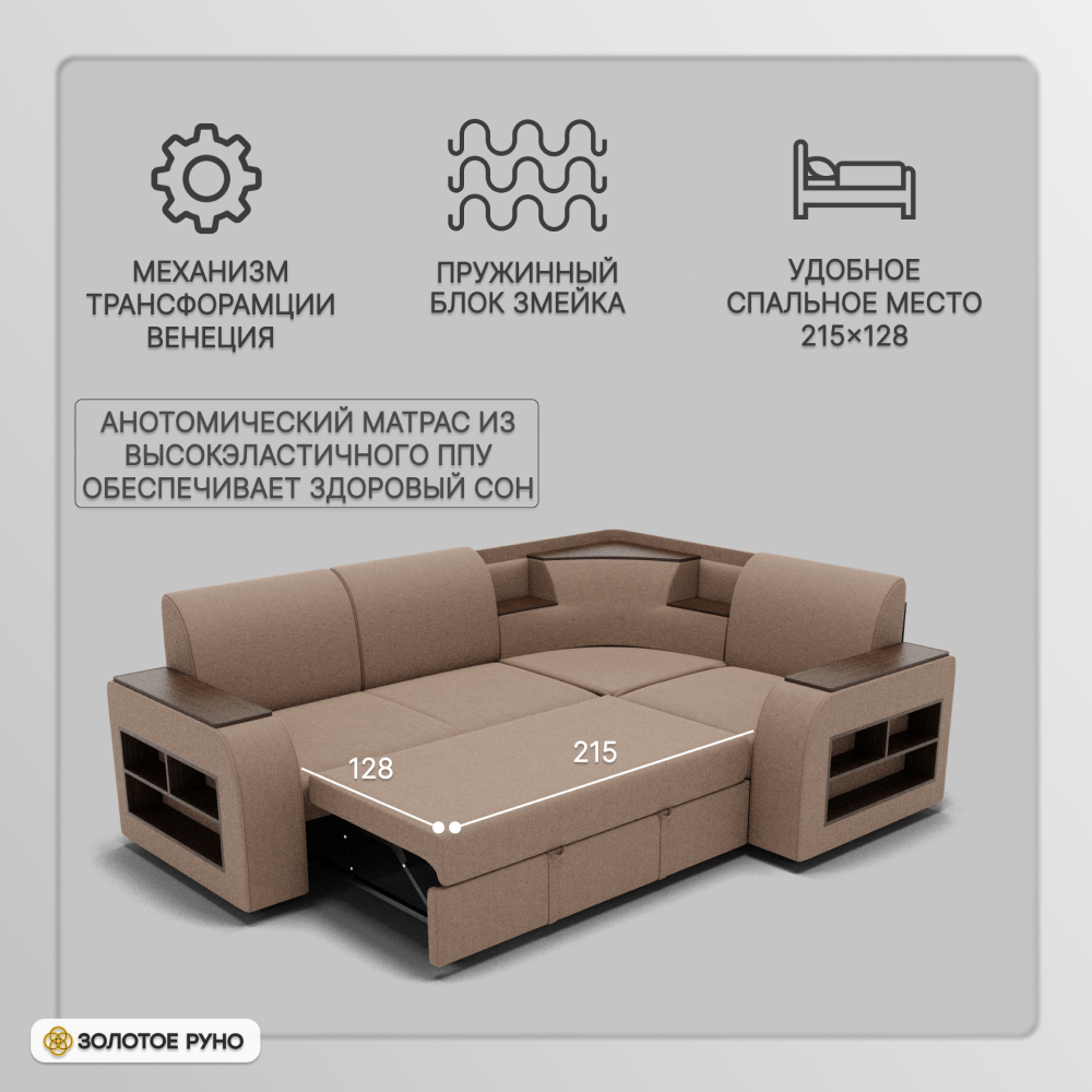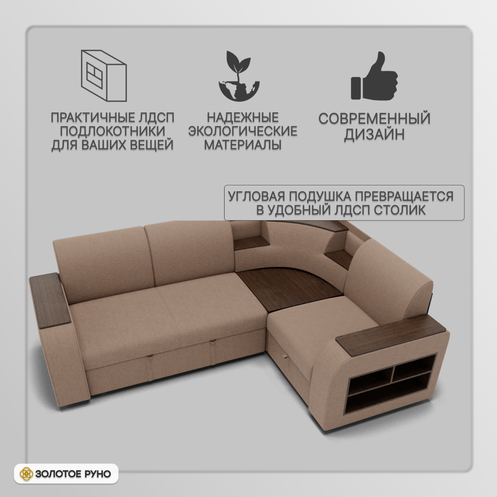 Отзывы о Столплит Угловой диван Фараон ППУ, велюр бежевый/коричневый