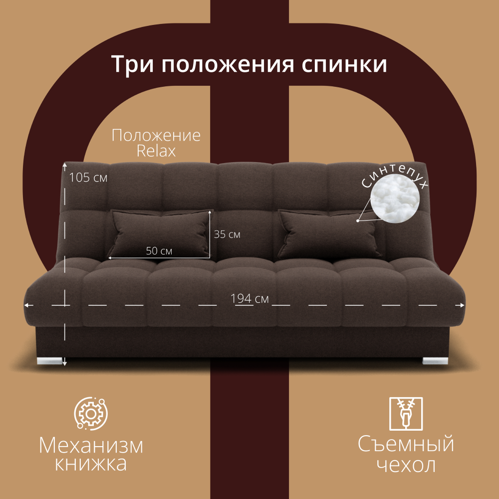 Отзывы о Столплит Прямой диван Фиеста-1 НПБ, велюр Коричневый