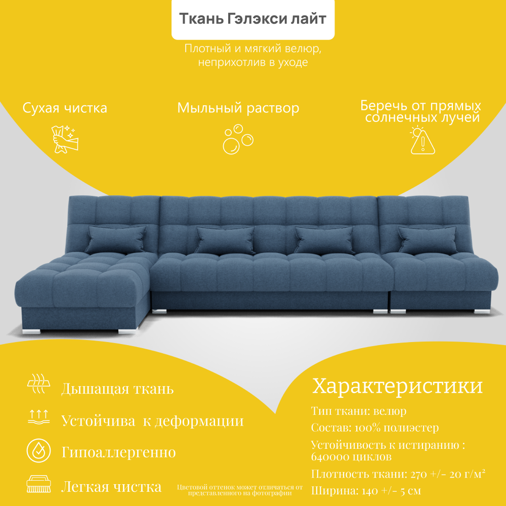 Отзывы о Столплит Угловой диван Фиеста-3 НПБ, велюр Голубой