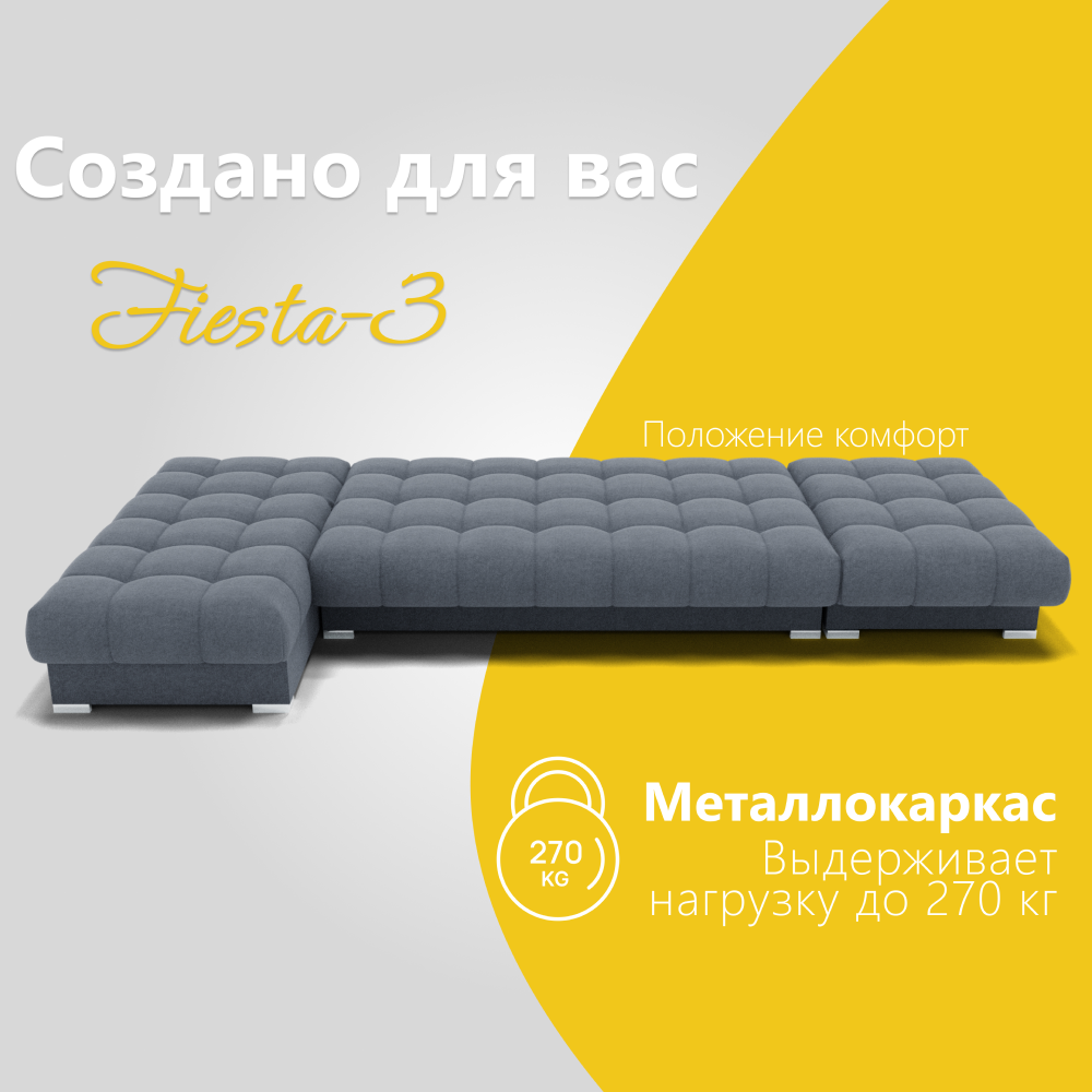 Отзывы о Столплит Угловой диван Фиеста-3 НПБ, велюр Серо-голубой