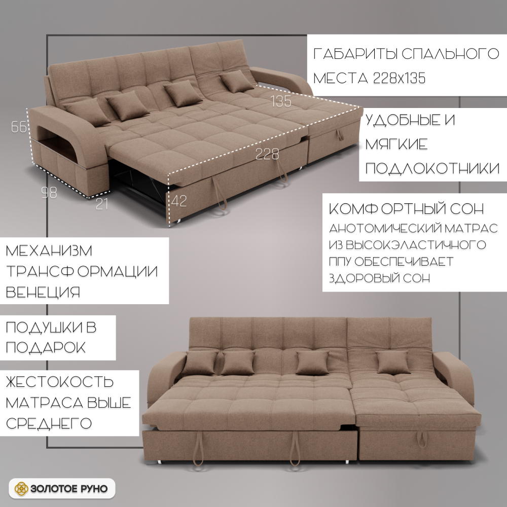 Отзывы о Столплит Угловой диван Майами-2 ППУ, велюр бежевый/коричневый
