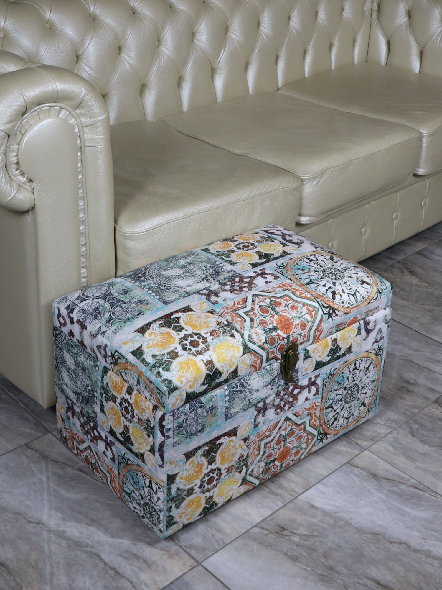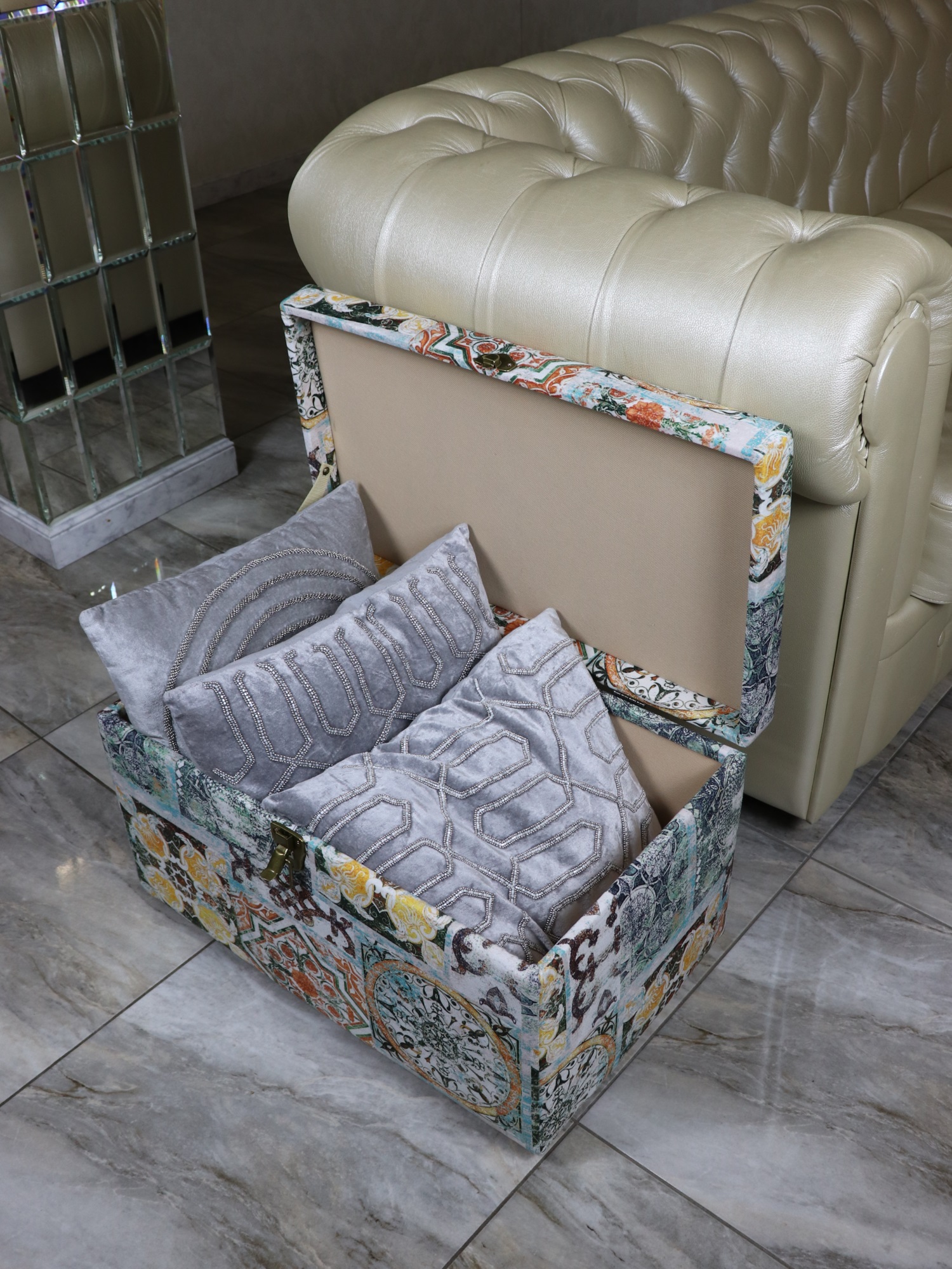 Банкетка ""Восточный "" с ящиком для хранения в восточном стиле сделан из принтованного велюра в мексиканской стилистике.