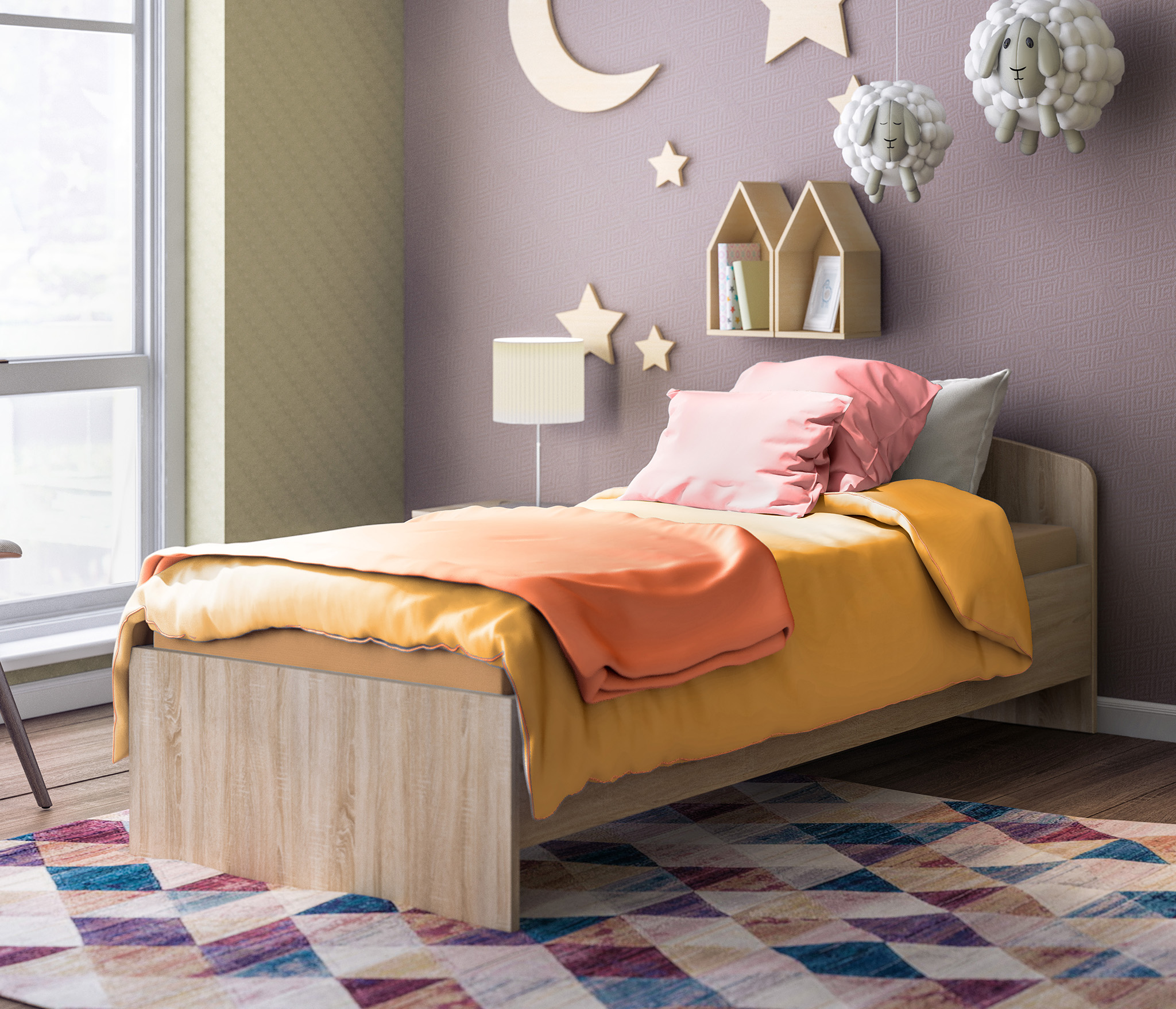 Размер спального места составляет 800х2000 мм, что обеспечивает комфортное пространство для сна и отдыха вашего ребенка.