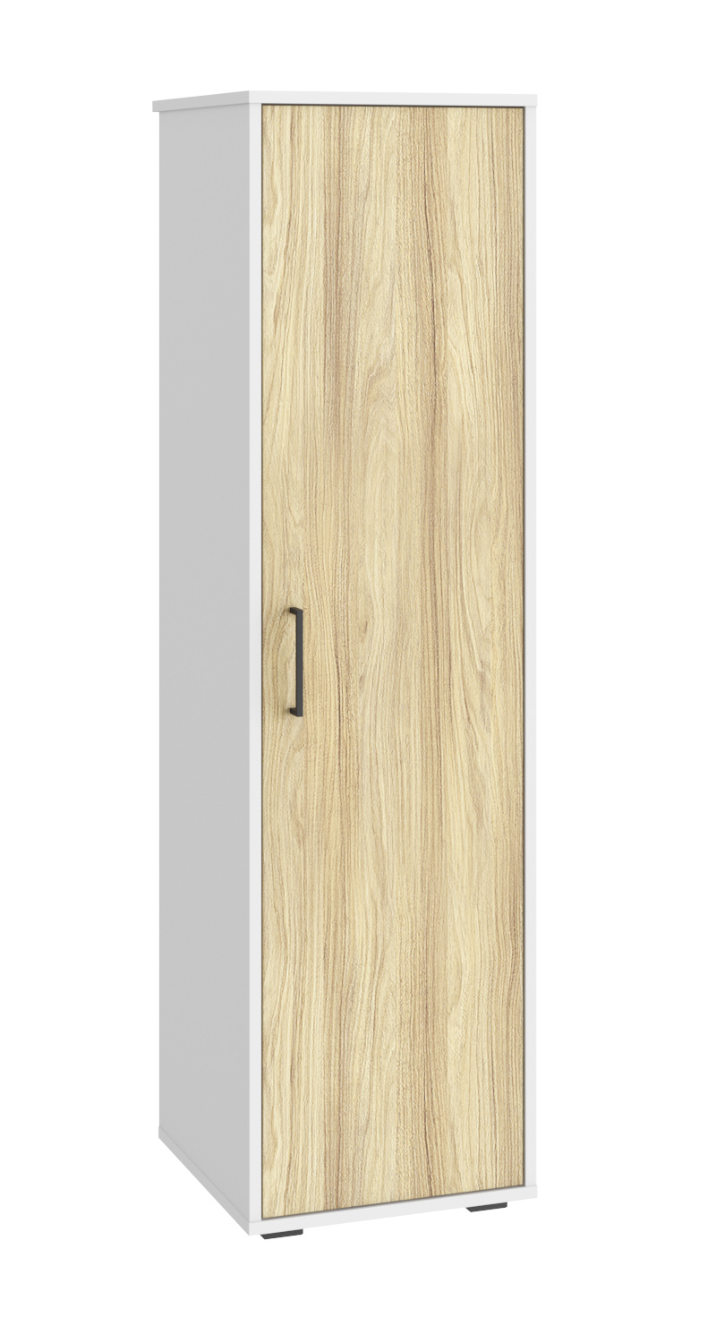 Шкаф-пенал Оскар ОС-01 - отличное решение для организации системы хранения. Лаконичный дизайн и компактные размеры делают эту мебель оптимально подходящей для любых помещений, как жилых, так и офисных. Шкаф пенал может украсить детскую комнату, спальню или офис, подойдет к любому интерьеру. За распашной дверцей располагаются две вместительные полки. Шкафчик обеспечит хранение вещей, игрушек, книг или других принадлежностей. Фасад распашного шкафа декорирован стильной ручкой, что делает открывание наиболее удобным. Дверь можно повесить как на правую, так и на левую сторону. Регулируемые опоры позволяют компенсировать возможные неровности пола. Фурнитура: ручка пластик, петли с доводчиками.
