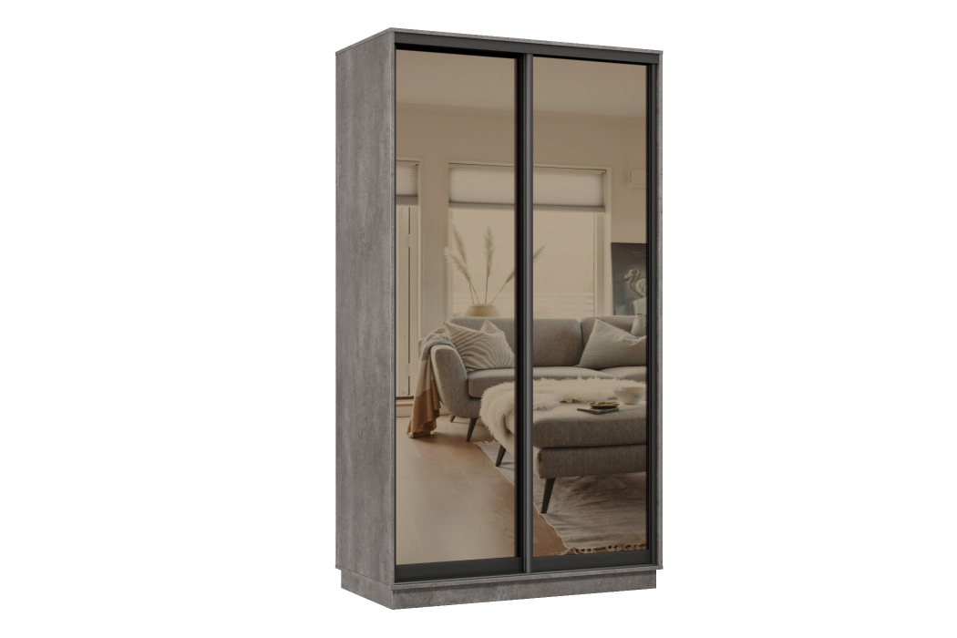 Отзывы о Столплит Шкаф-купе Премьер МИНИ 02 (01ЗБ;01ЗБ) фасады зеркало бронза/двухдверный/Профиль чёрный муар Бетон