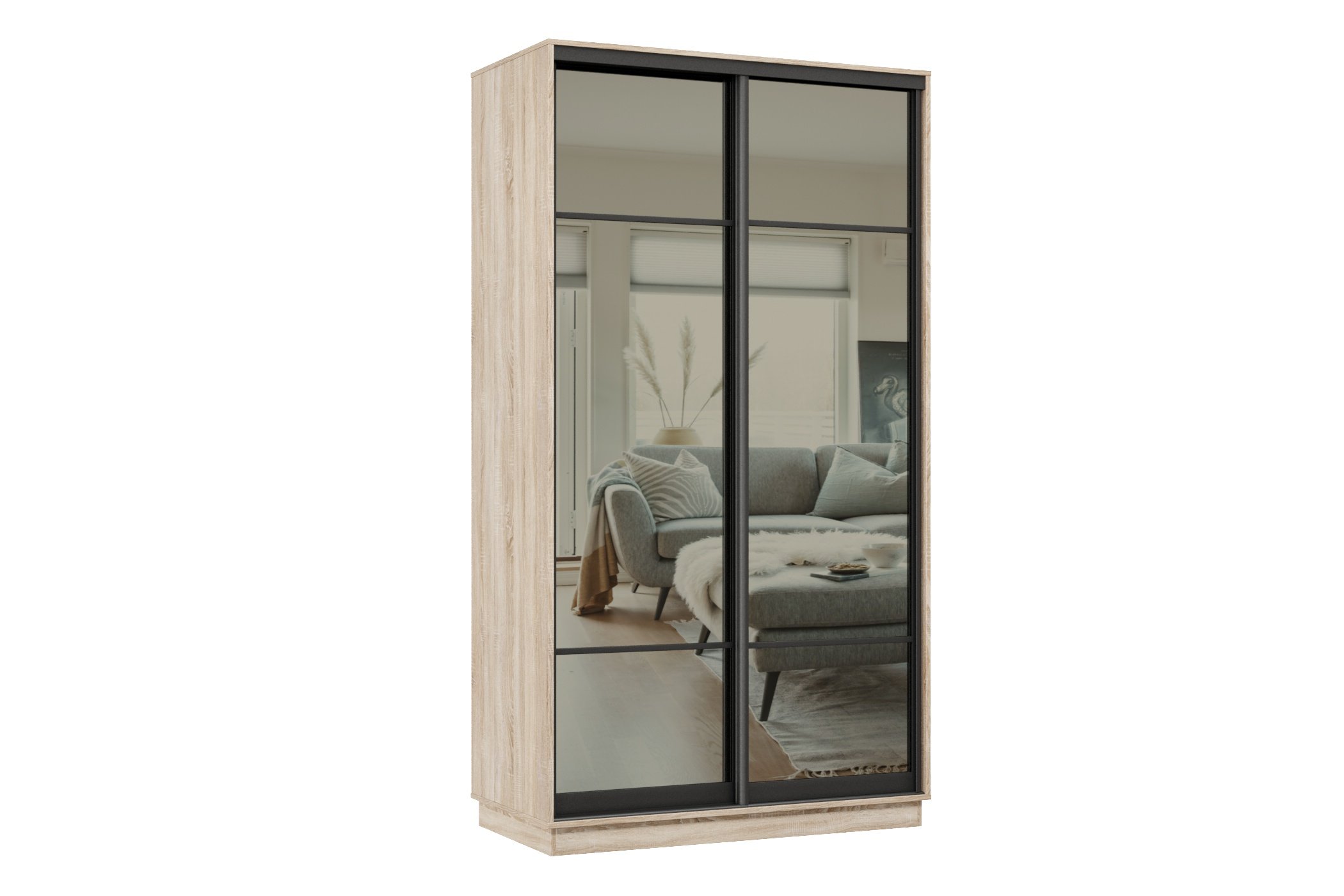 Шкаф-купе Премьер 10 (11ЗГ;11ЗГ) фасады зеркало графит/двухдверный/Профиль чёрный муар (Дуб сонома)