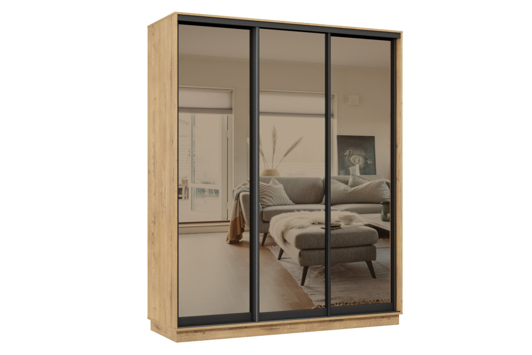 Отзывы о Столплит Шкаф-купе Премьер 21 (01ЗБ;01ЗБ;01ЗБ) фасады зеркало бронза/трёхдверный/Профиль чёрный муар Бунратти
