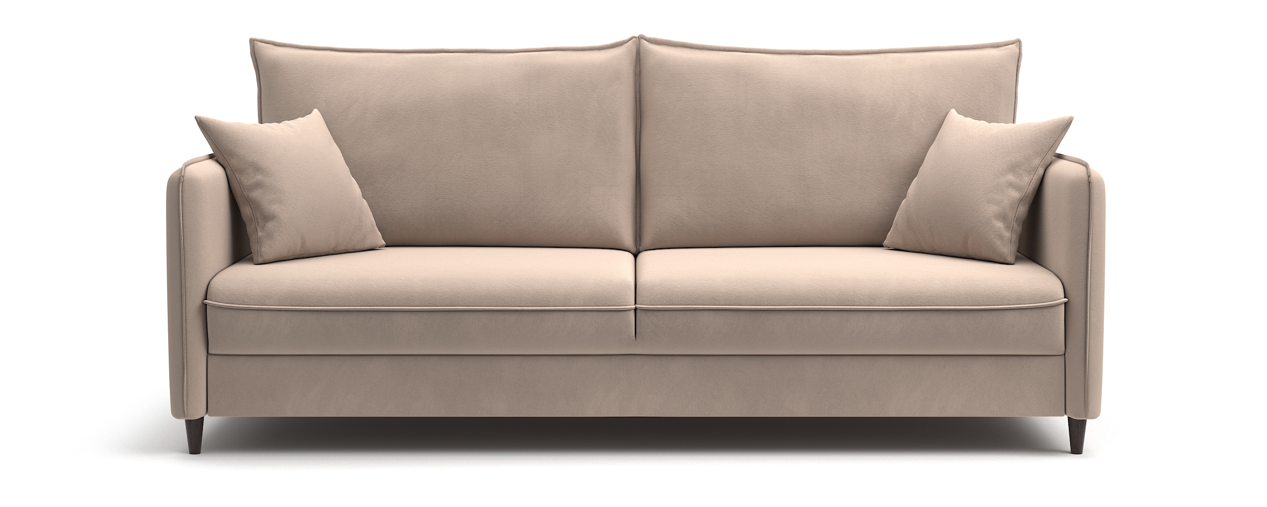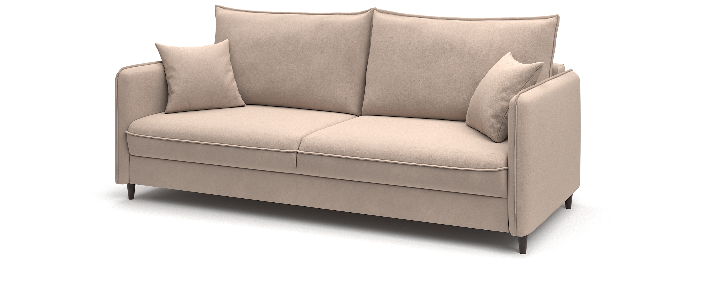 Диван-кровать «Фьорд» сочетает в себе функциональность и лаконичный внешний вид. В его дизайне присутствуют все основные элементы, свойственные скандинавскому стилю: тонкие подлокотники и мягкие подушки с отделкой модным «французским швом»; пара дополнительных миниатюрных подушек для украшения интерьера; декоративные складки в местах скругления подлокотника и сидения.