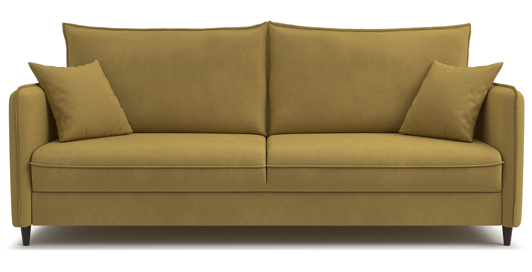 Диван-кровать «Фьорд» сочетает в себе функциональность и лаконичный внешний вид. В его дизайне присутствуют все основные элементы, свойственные скандинавскому стилю: тонкие подлокотники и мягкие подушки с отделкой модным «французским швом»; пара дополнительных миниатюрных подушек для украшения интерьера; декоративные складки в местах скругления подлокотника и сидения.
