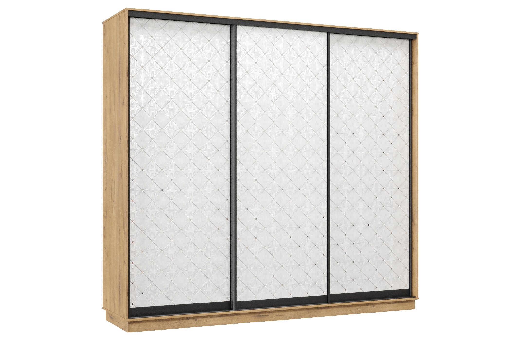 Шкаф-купе Премьер 34 (01РБ;01РБ;01РБ) фасады ромб белый/трёхдверный/Профиль чёрный муар (Бунратти)