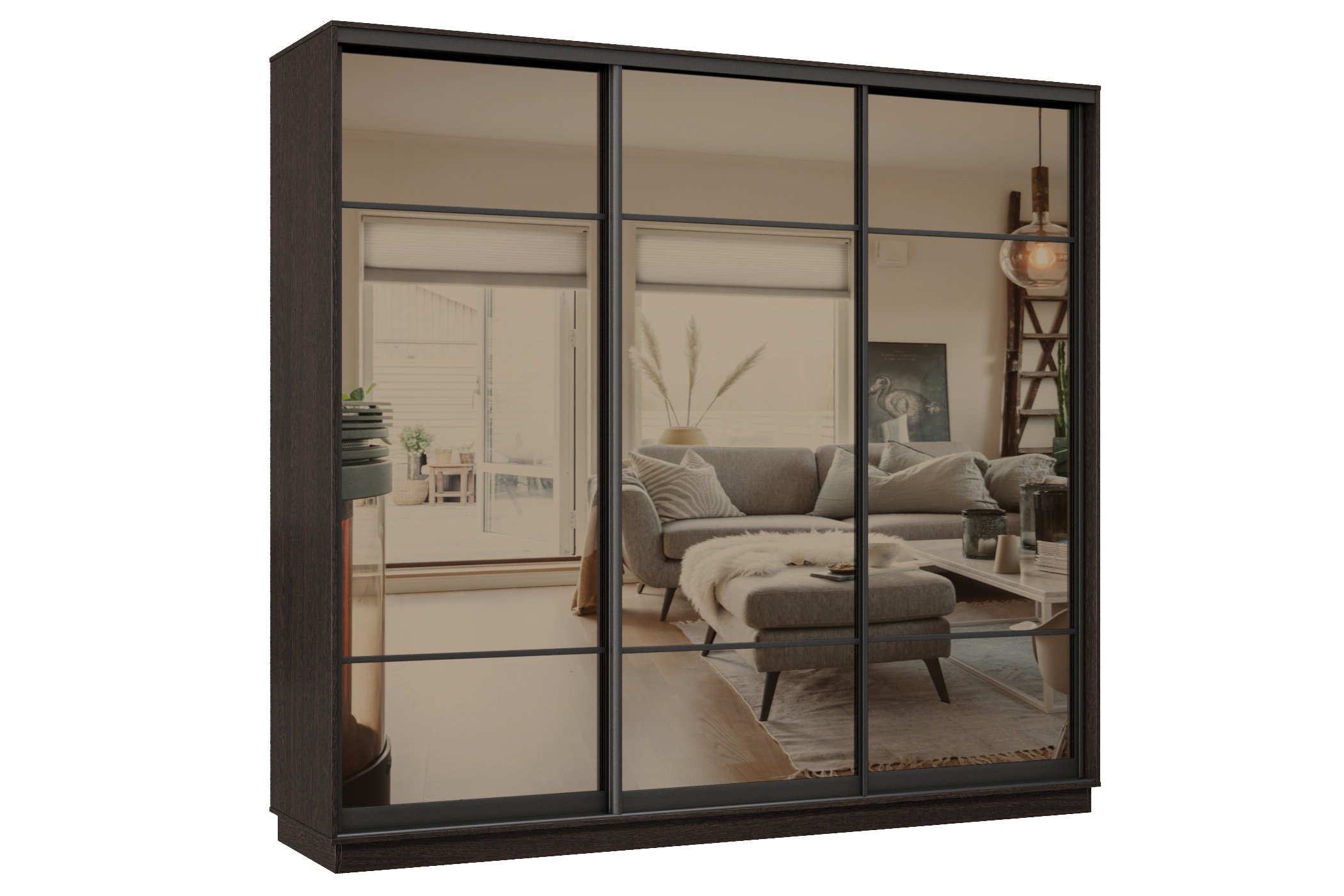 Отзывы о Столплит Шкаф-купе Премьер 36 (11ЗБ;11ЗБ;11ЗБ) фасады зеркало бронза/трёхдверный/Профиль чёрный муар Венге