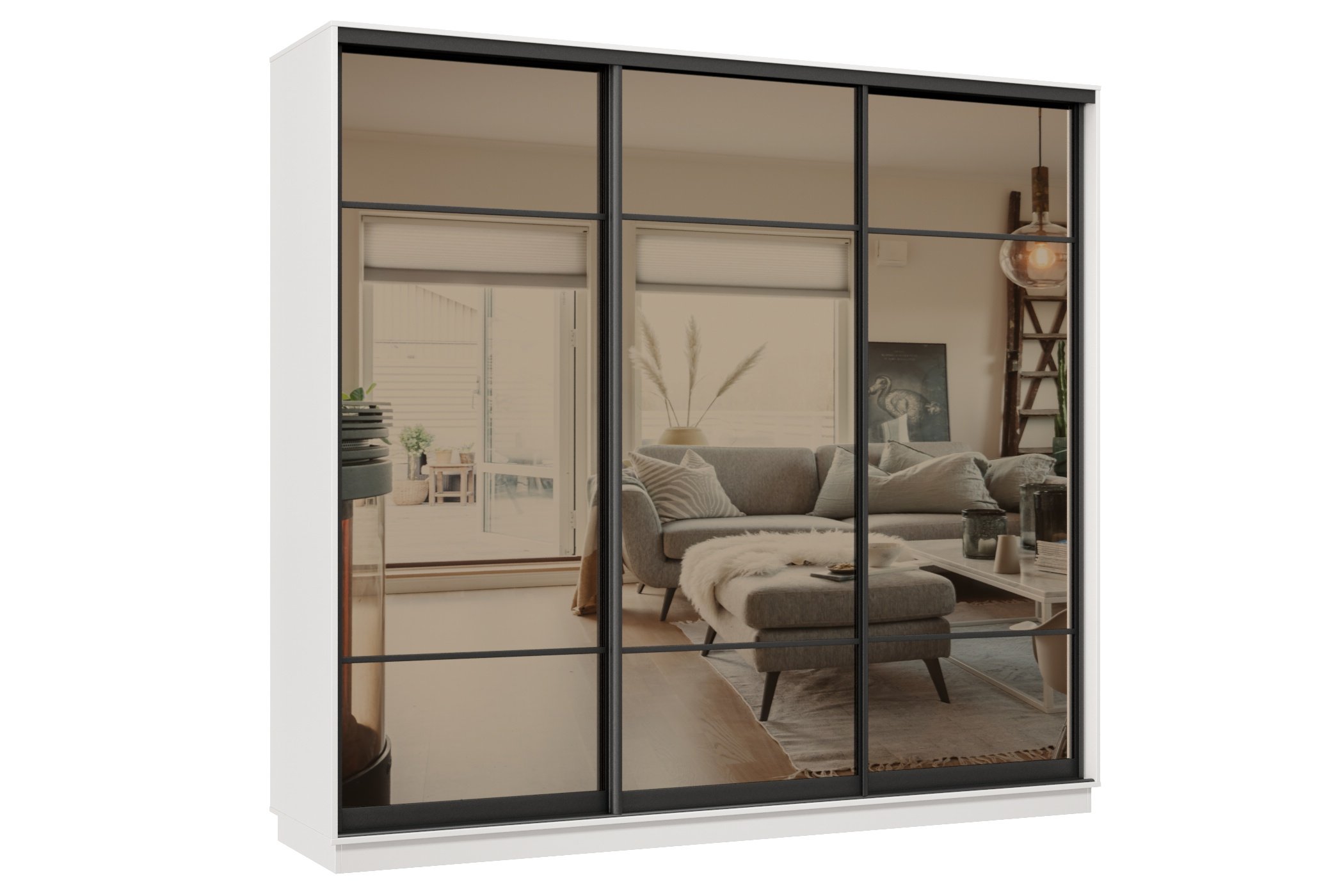 Отзывы о Столплит Шкаф-купе Премьер 57 (11ЗБ;11ЗБ;11ЗБ) фасады зеркало бронза/трёхдверный/Профиль чёрный муар Белый