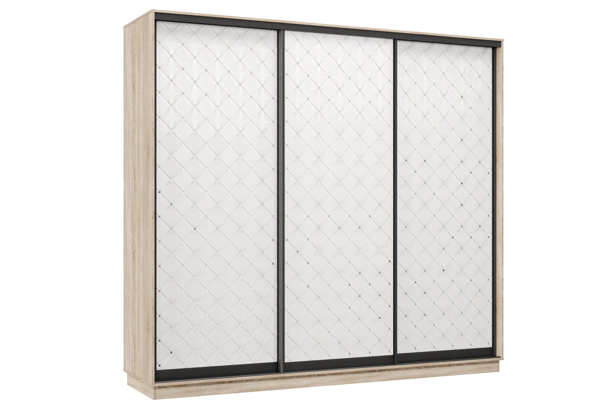 Шкаф-купе Премьер 58 (01РБ;01РБ;01РБ) фасады ромб белый/трёхдверный/Профиль чёрный муар (Дуб сонома)