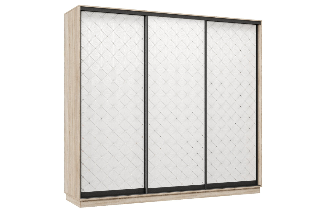 Отзывы о Столплит Шкаф-купе Премьер 58 (01РБ;01РБ;01РБ) фасады ромб белый/трёхдверный/Профиль чёрный муар Дуб сонома