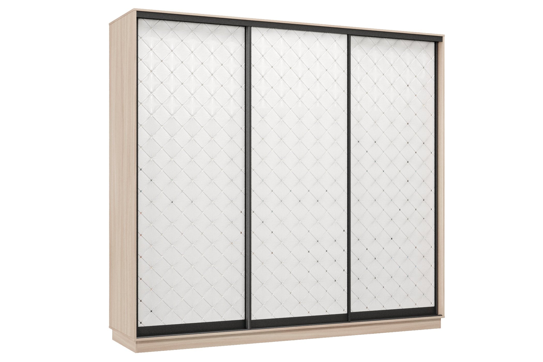 Шкаф-купе Премьер 58 (01РБ;01РБ;01РБ) фасады ромб белый/трёхдверный/Профиль чёрный муар (Ясень шимо светлый)