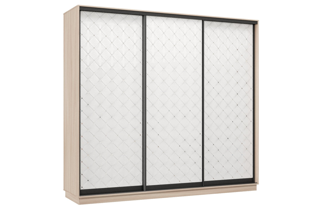 Отзывы о Столплит Шкаф-купе Премьер 58 (01РБ;01РБ;01РБ) фасады ромб белый/трёхдверный/Профиль чёрный муар Ясень шимо светлый