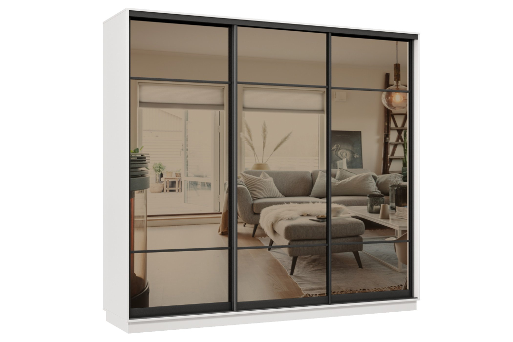Отзывы о Столплит Шкаф-купе Премьер 58 (11ЗБ;11ЗБ;11ЗБ) фасады зеркало бронза/трёхдверный/Профиль чёрный муар Белый