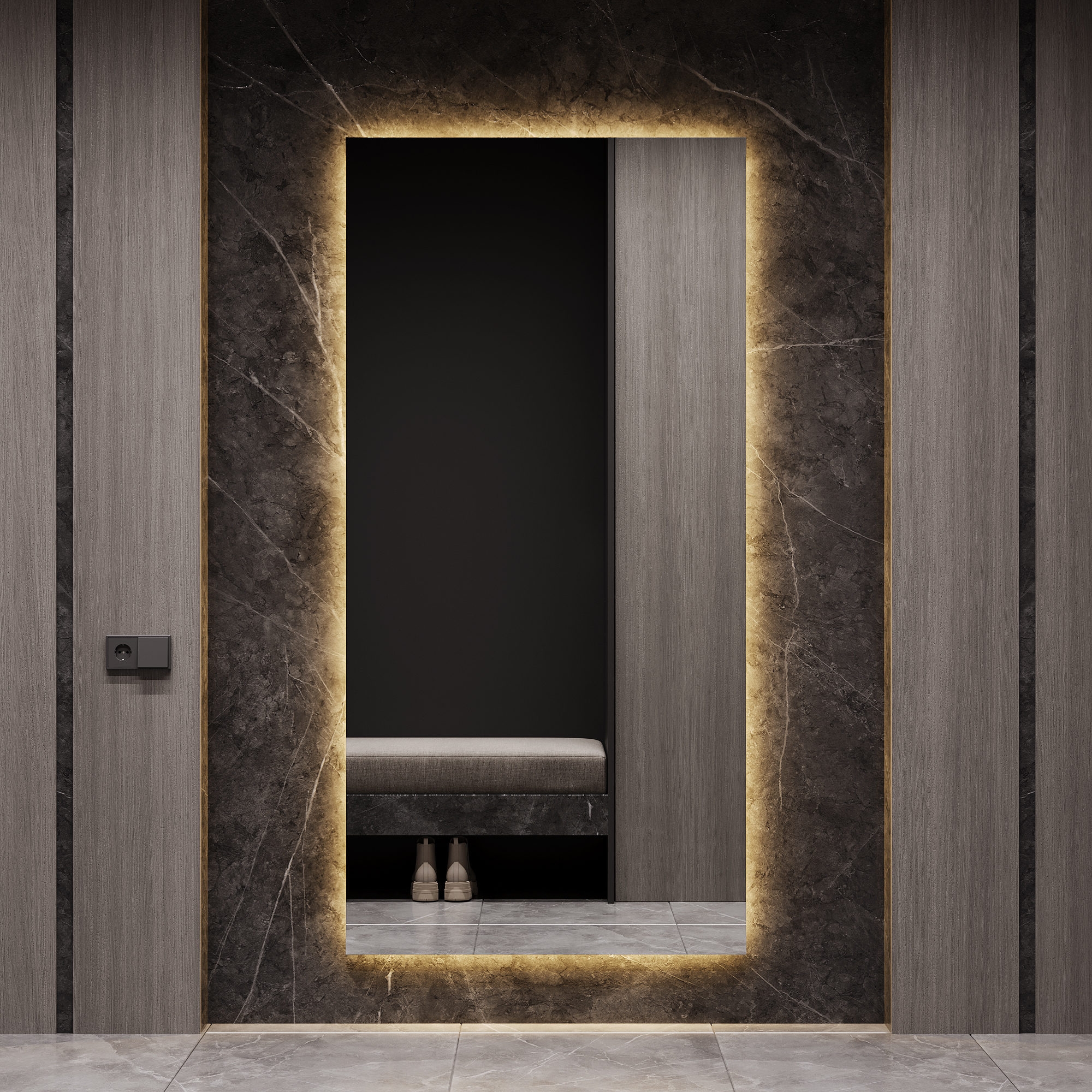 Зеркало с холодной подсветкой GENGLASS HALFEO NF LED XL, с проводом 96х196 см Код I0000377086