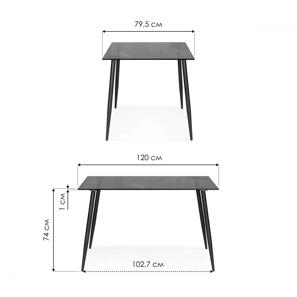 Стол стеклянный Smoke 120х80х75 clear gray / black; Окрашенный металл. Расстояние между ножками - 102,7см. Толщина столешницы - 1см. Закалённое стекло. Хороший стильный и минималистичный стол на 4ёх человек.