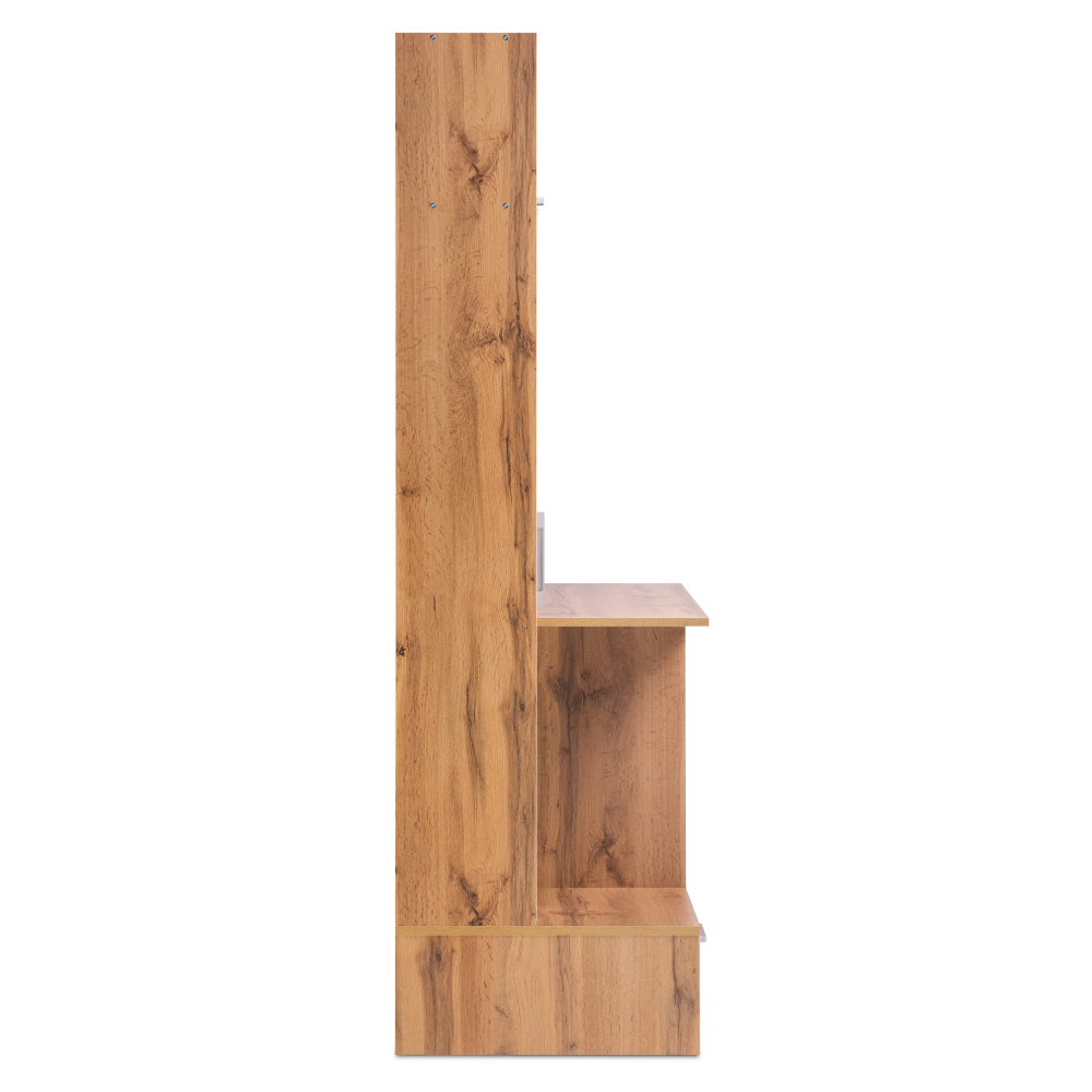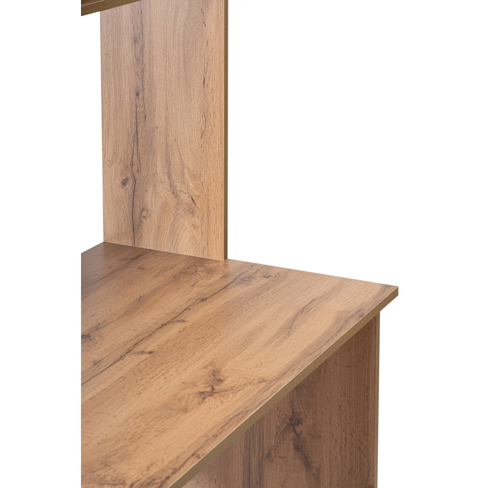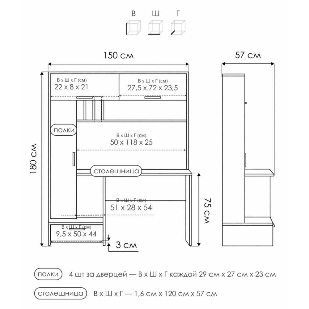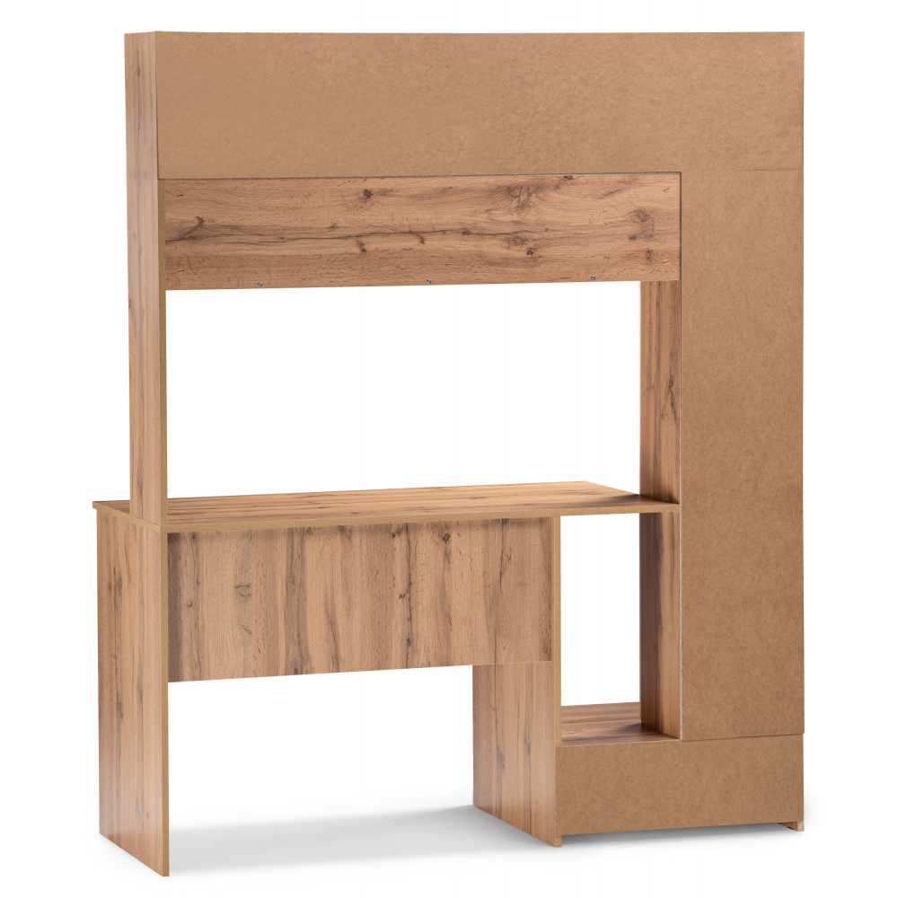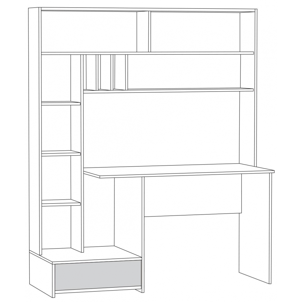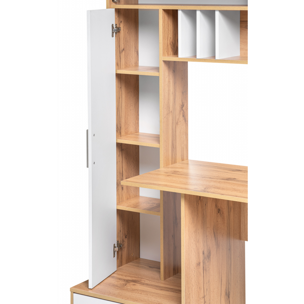 Стол Лайт 03.243 дуб золотой (craft) / белый премиум; ЛДСП. Высота стола без надстройки - 75см. Толщина столешницы - 1,6см. Горизонтальные фасады на газовых амортизаторах. Распашные двери на четырёхшарнирных петлях
