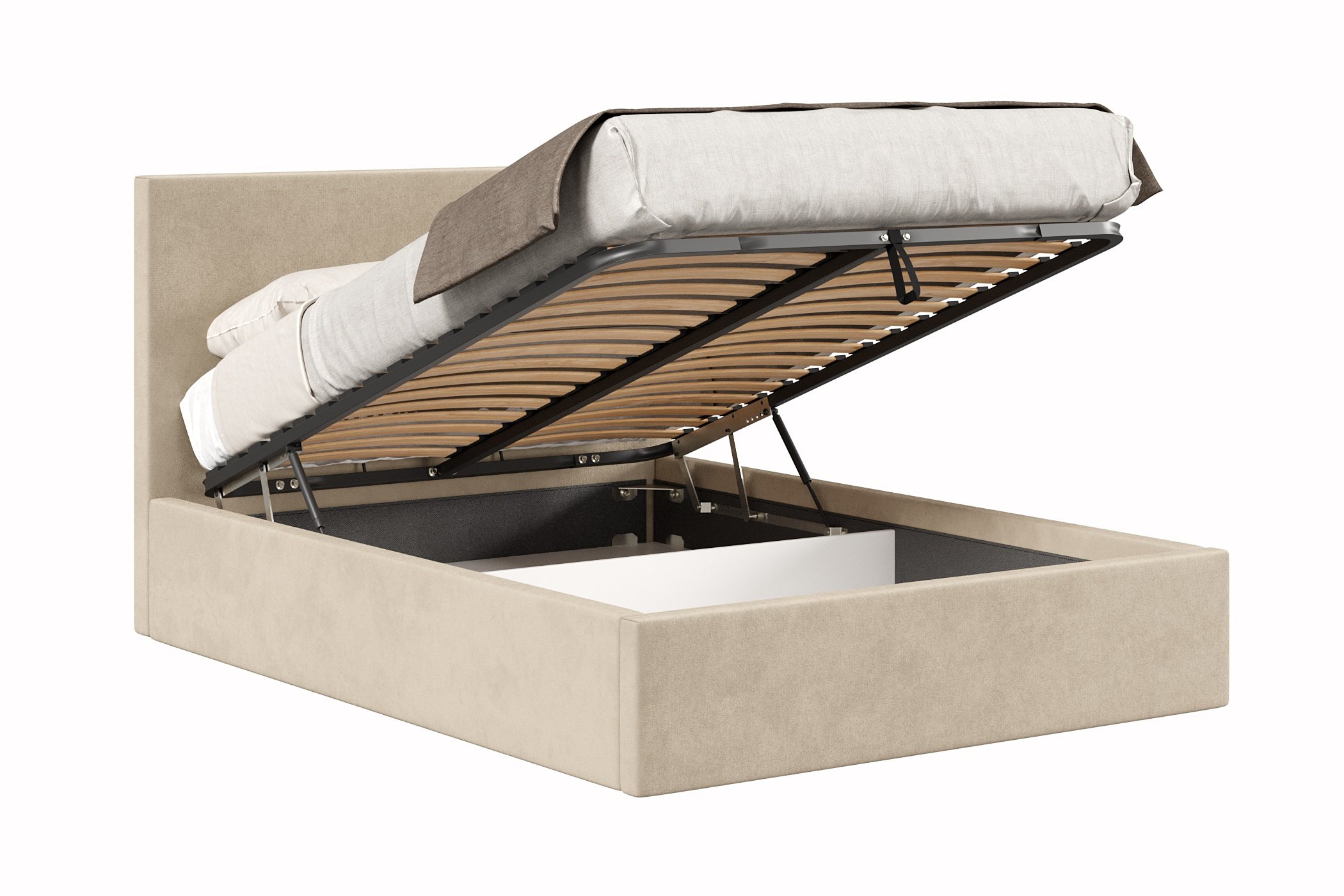 Кровать имеет нишу для хранения разных вещей, это очень удобно, если пространство в комнате не дает возможность поставить дополнительные шкафчики, либо полки.