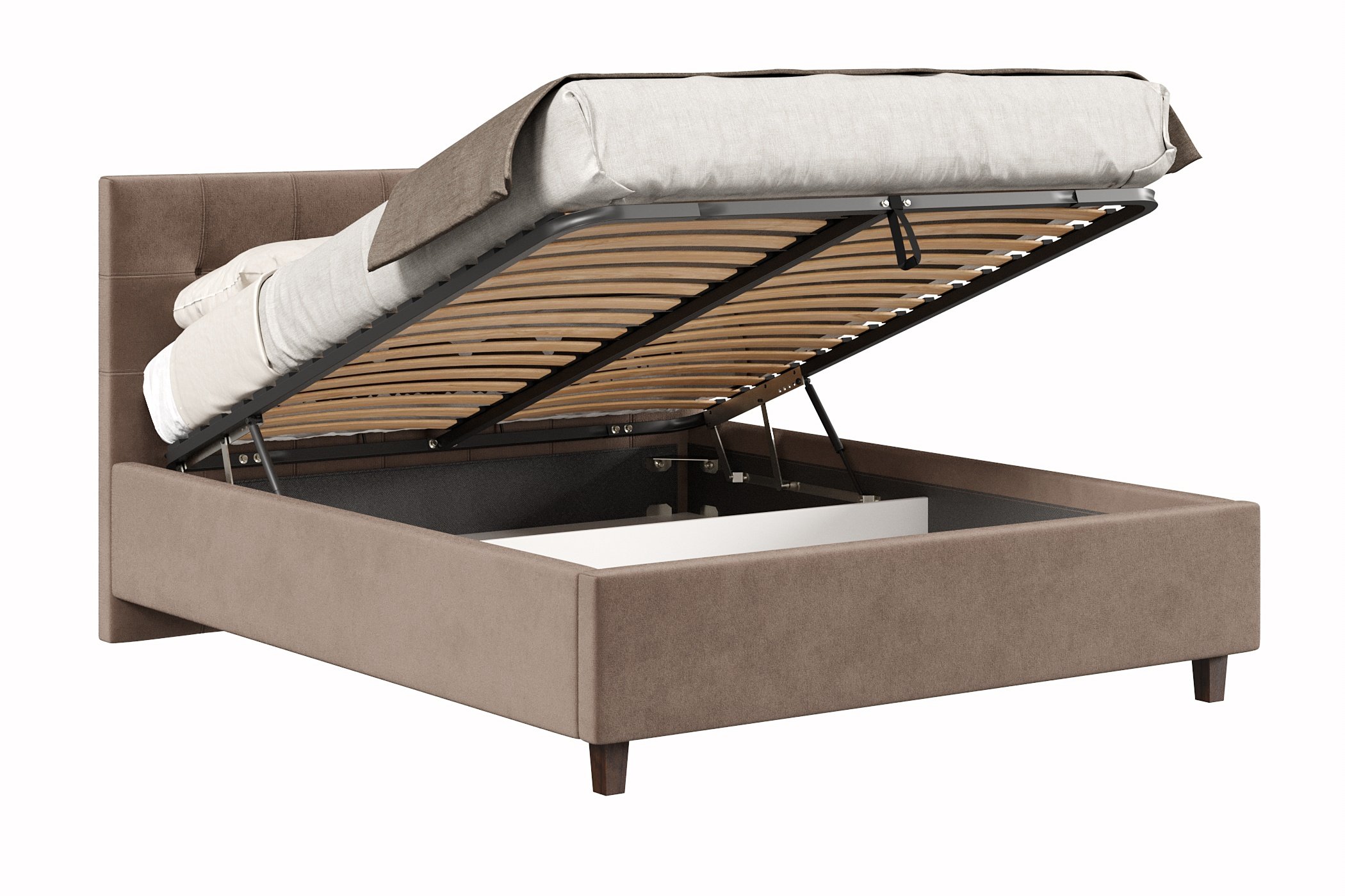 Кровать имеет нишу для хранения разных вещей, это очень удобно, если пространство в комнате не дает возможность поставить дополнительные шкафчики, либо полки.