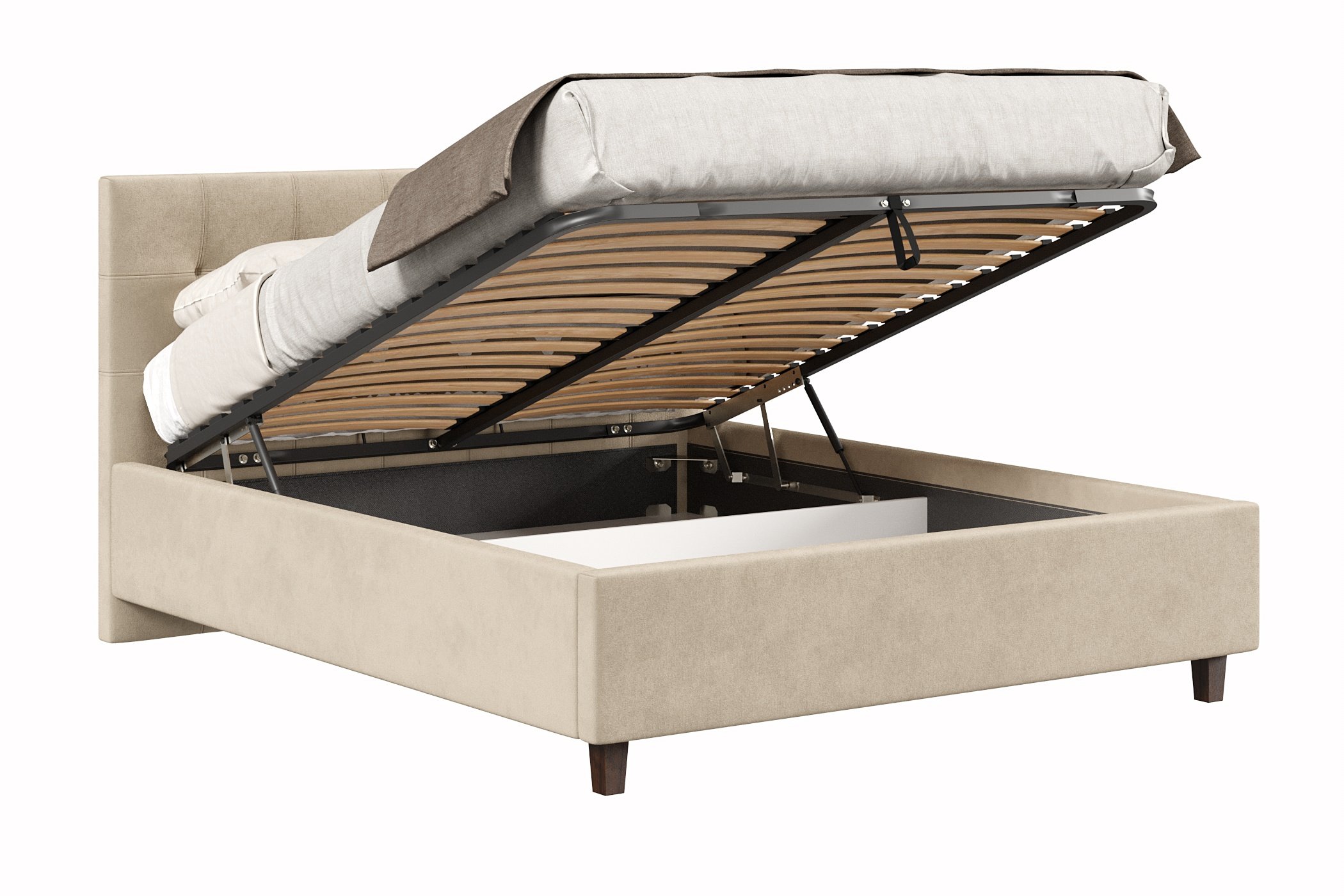 Кровать имеет нишу для хранения разных вещей, это очень удобно, если пространство в комнате не дает возможность поставить дополнительные шкафчики, либо полки.