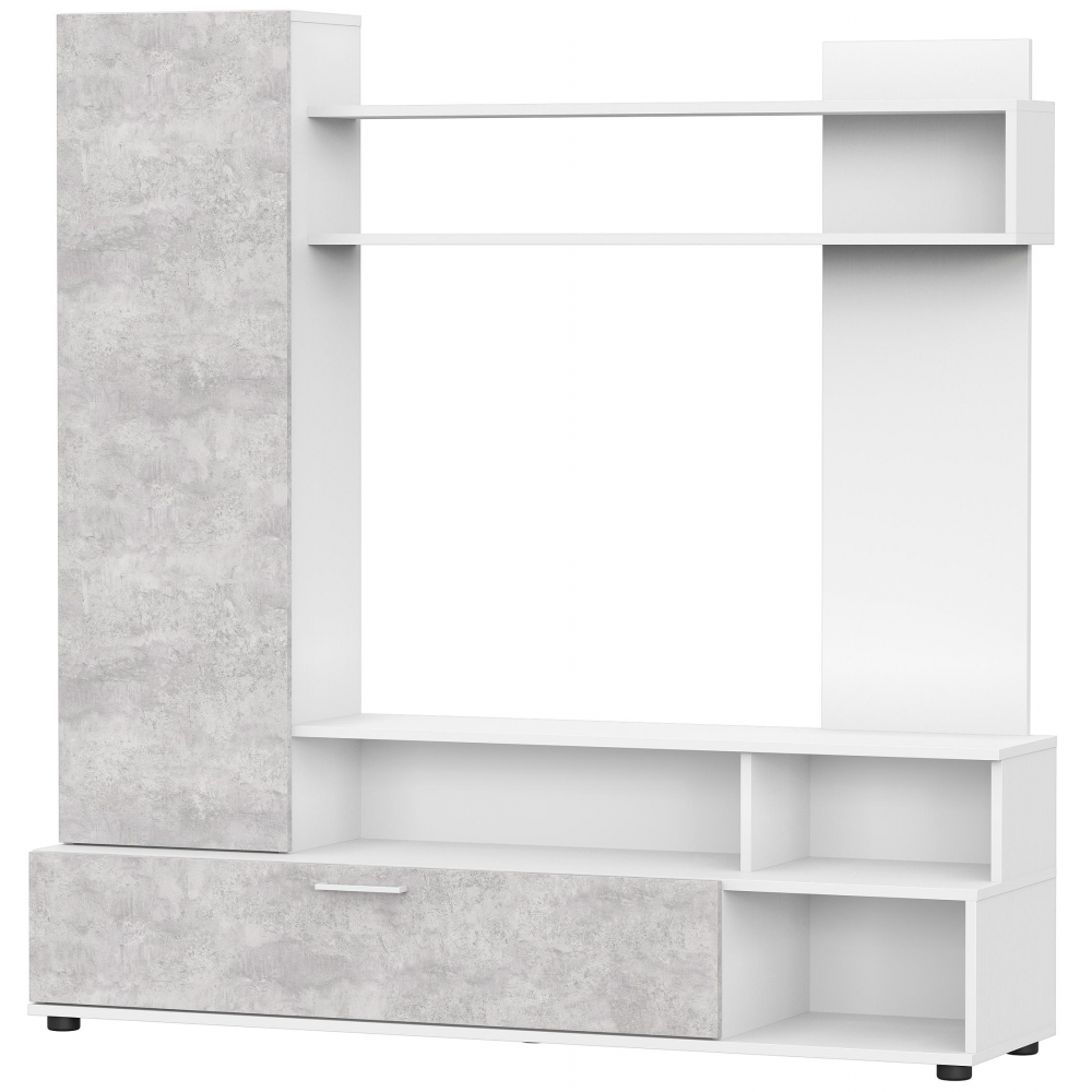 Под нишей расположен 1 закрытый ящик и 3 открытые полки, которые могут стать идеальным местом для хранения вашей коллекции DVD, игр, журналов и других вещей.