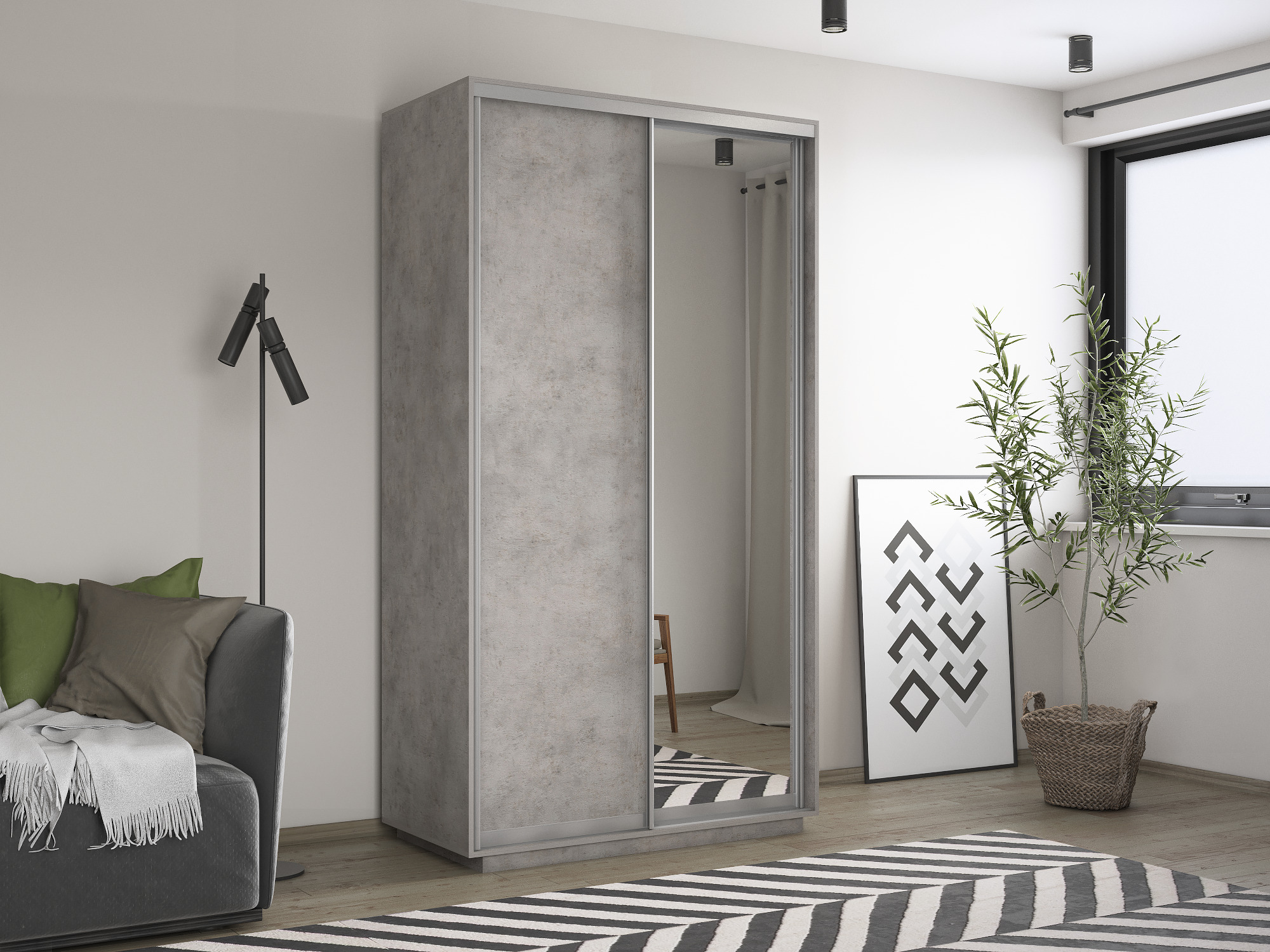 Отзывы о Столплит Шкаф-купе Экспресс Хит 2х дверный ДСП/Зеркало 120х60х220 Бетон