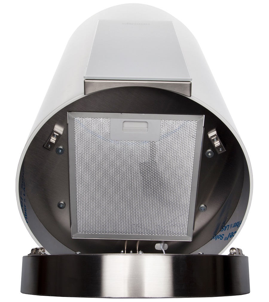 • Островная вытяжка - это уже не только необходимое устройство, но и фантастический элемент интерьера. Сочетания цилиндрического корпуса с прямоугольной панелью управления и круглой декоративной панелью освещения создают стильную геометрию, привлекают лаконичностью и правильностью форм