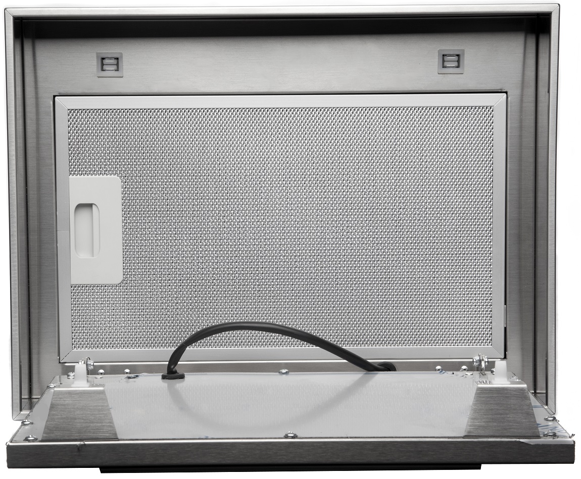 • Алюминиевый фильтр (производство Германия), с усиленной конструкцией, эффективно задерживает частицы жира и копоти