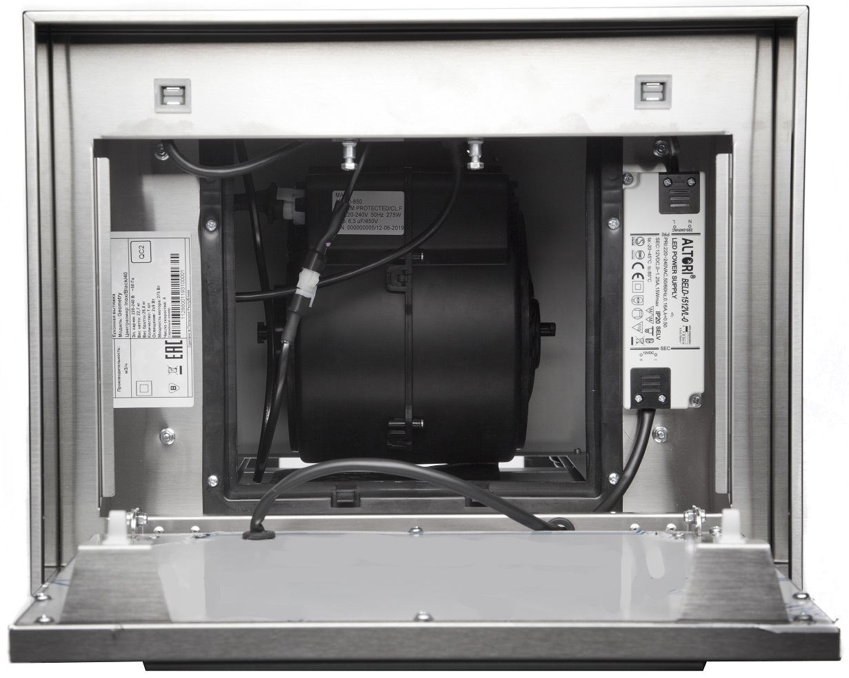 • Корпус вытяжки выполнен из высококачественной нержавеющей стали и обработан абсорбирующим слоем, поэтому его легко содержать в чистоте
