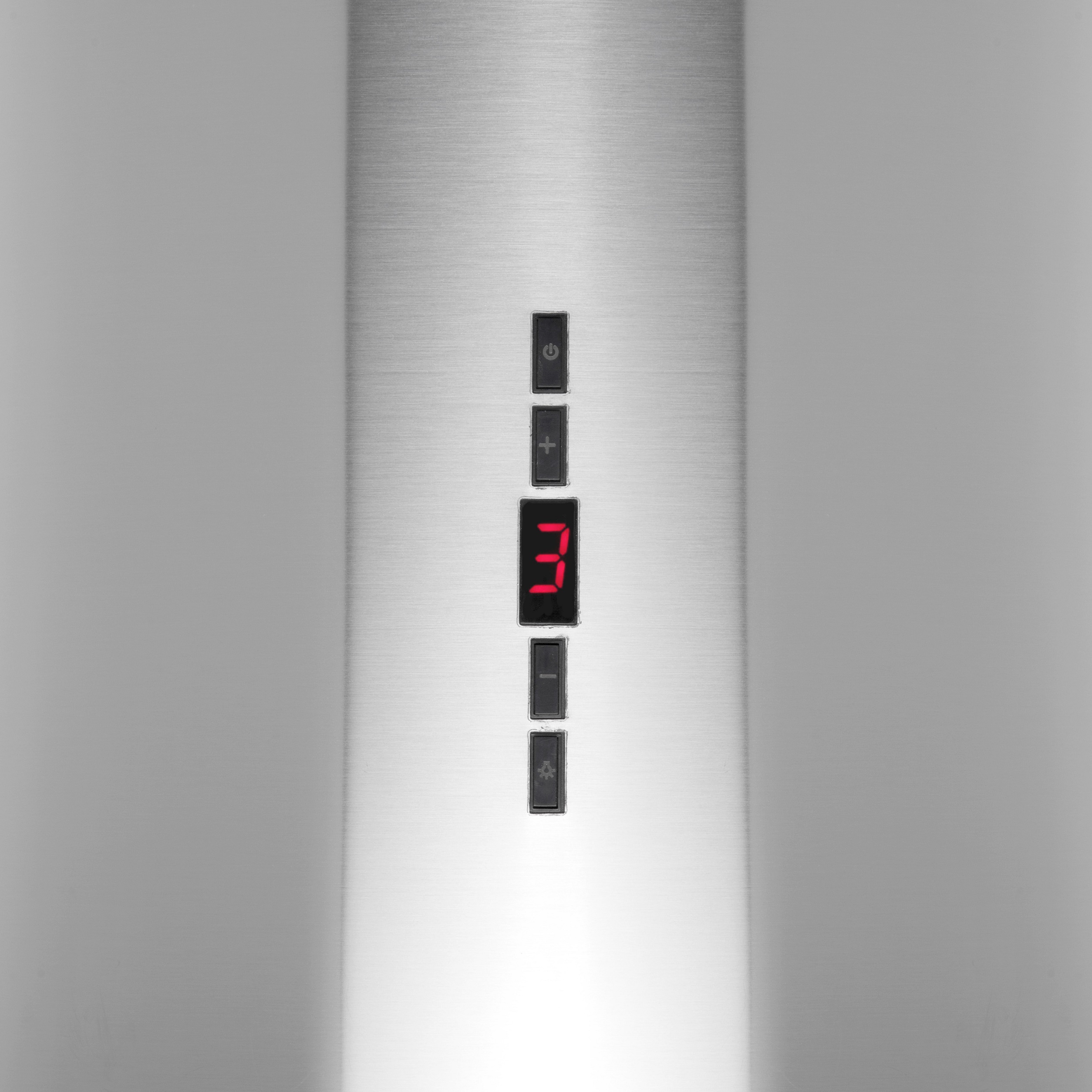 + Вытяжка выполнена в форме цилиндра. Геометрические формы повсеместно используется в современных дизайнерских проектах, они ассоциируются с простотой и лаконичностью, привносят в помещение гармонию и стиль