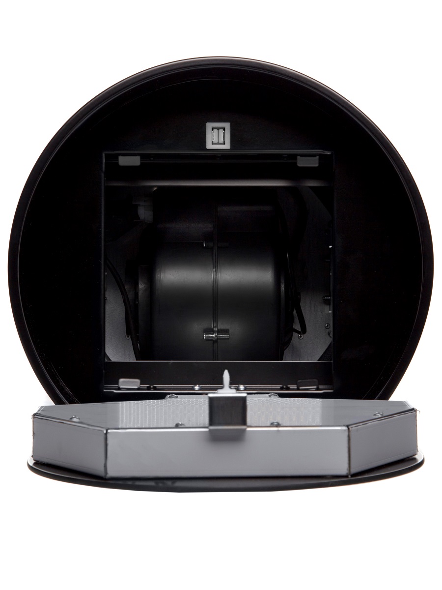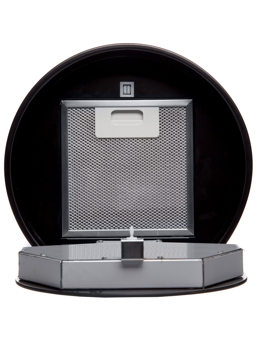 + Вытяжка выполнена в форме цилиндра. Геометрические формы повсеместно используется в современных дизайнерских проектах, они ассоциируются с простотой и лаконичностью, привносят в помещение гармонию и стиль. Стильное сочетание стали и блеска закаленного стекла создают ощущение легкости прочной конструкции. Декоративный стеклянный люк скрывает алюминиевый, жироулавливающий фильтр, придавая завершенность композиции