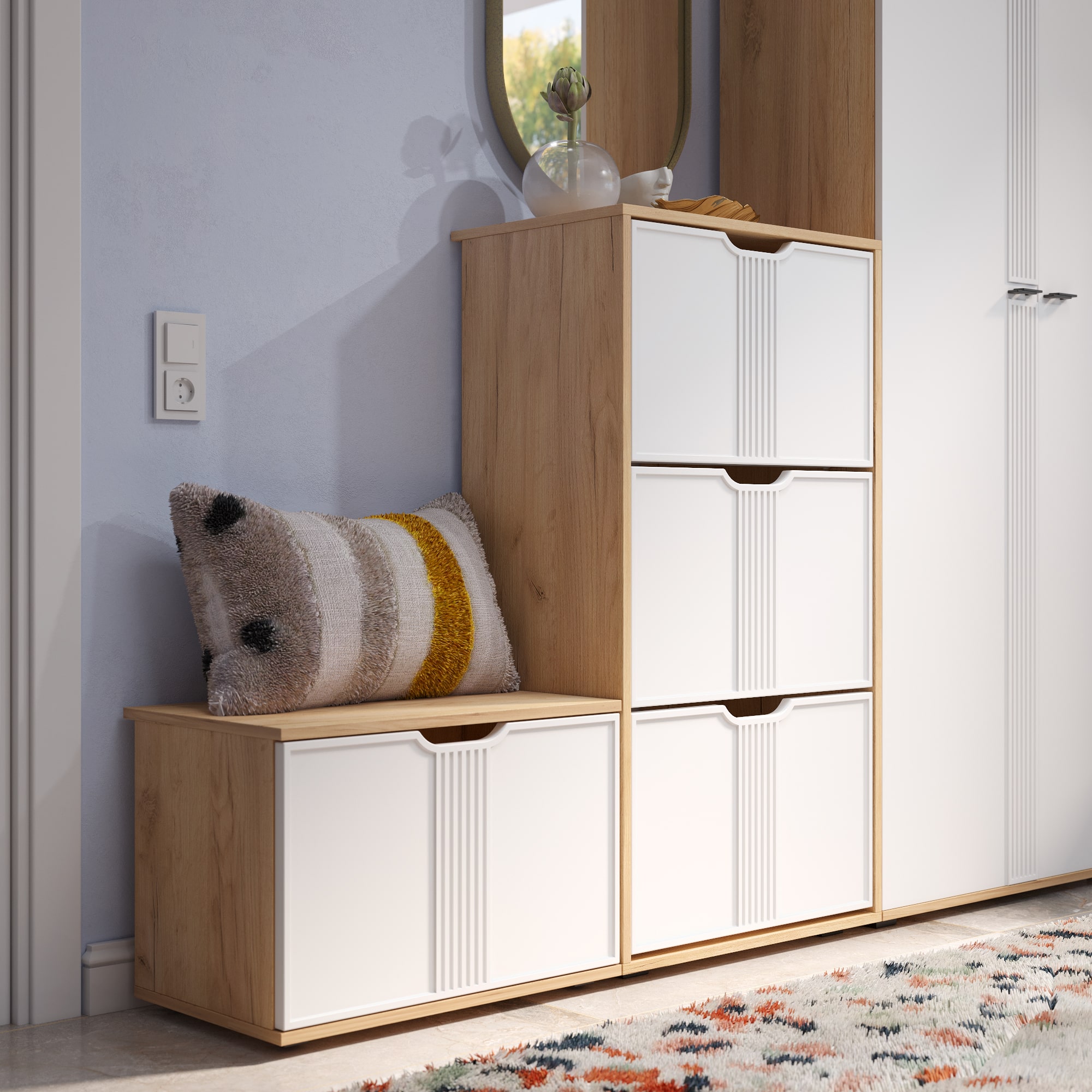 Тумба для обуви Эмилия ЭЛ-43 поможет создать уютную атмосферу в вашей прихожей. Изделие навсегда решит проблему разбросанной обуви по всему коридору. Тумба оснащена тремя отделениями со специальными отсеками для хранения обуви. Свес крышки в 30 мм обеспечит прилегание к стене с любым плинтусом. Высота опоры 20 мм.