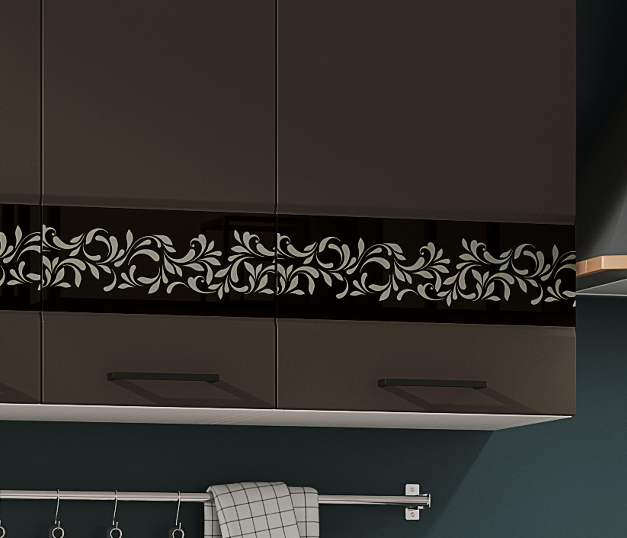 - Фасады МДФ. Верх цвет Смоки софт тач со стеклом. Низ цвет Вяз.