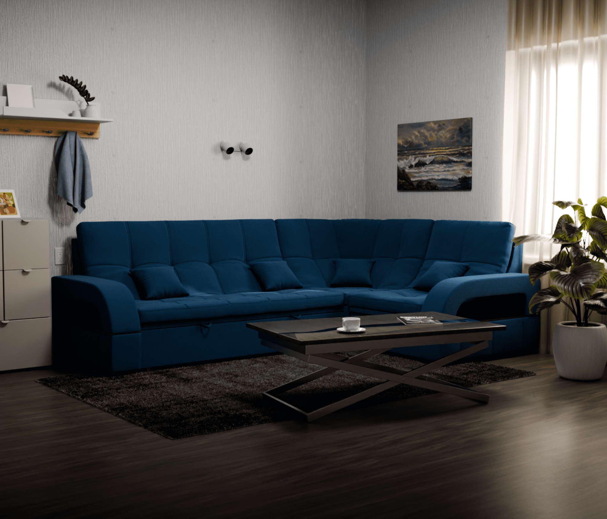 Модульный диван "Майами-3" от YORCOM - это отличный выбор для тех, кто ищет комфортабельный и стильный диван для своего дома. Этот диван выполнен из велюра белого цвета, который придает ему элегантный и современный вид.