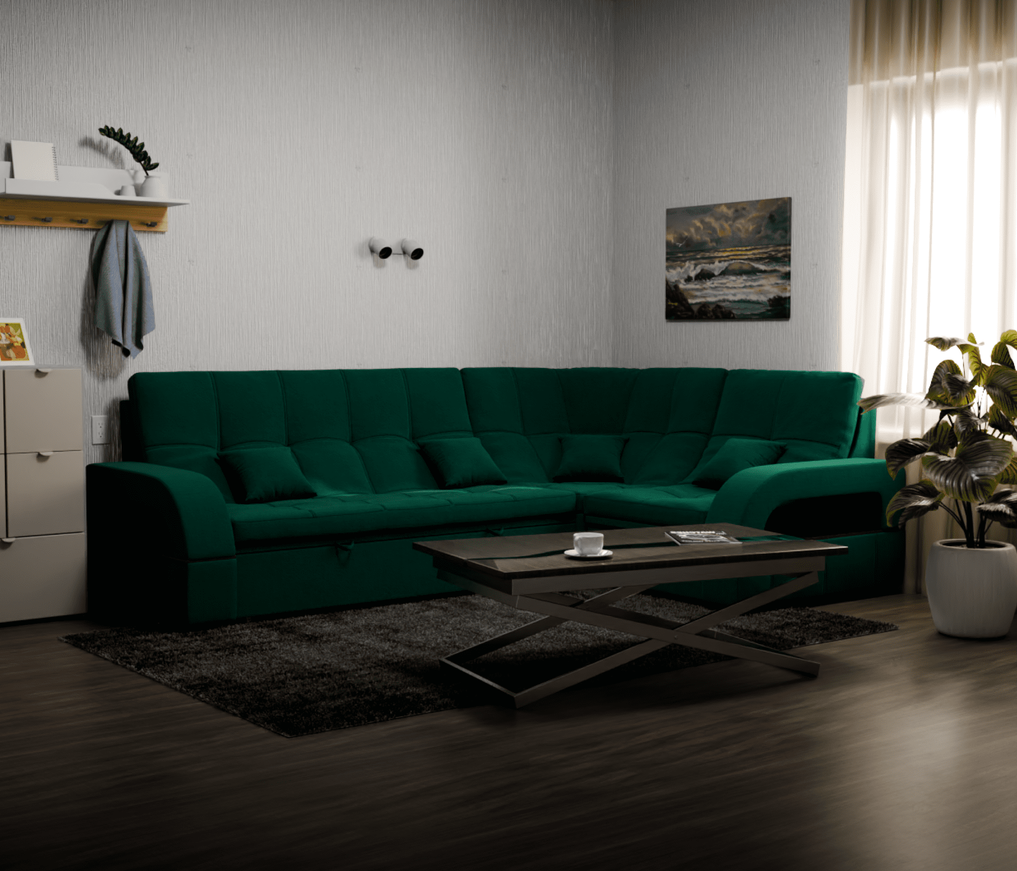 Модульный диван "Майами-3" от YORCOM - это отличный выбор для тех, кто ищет комфортабельный и стильный диван для своего дома. Этот диван выполнен из велюра белого цвета, который придает ему элегантный и современный вид.